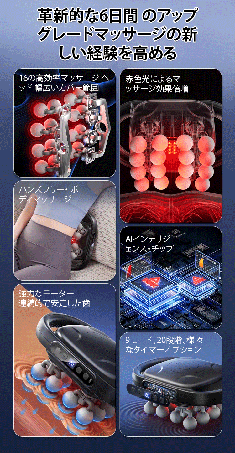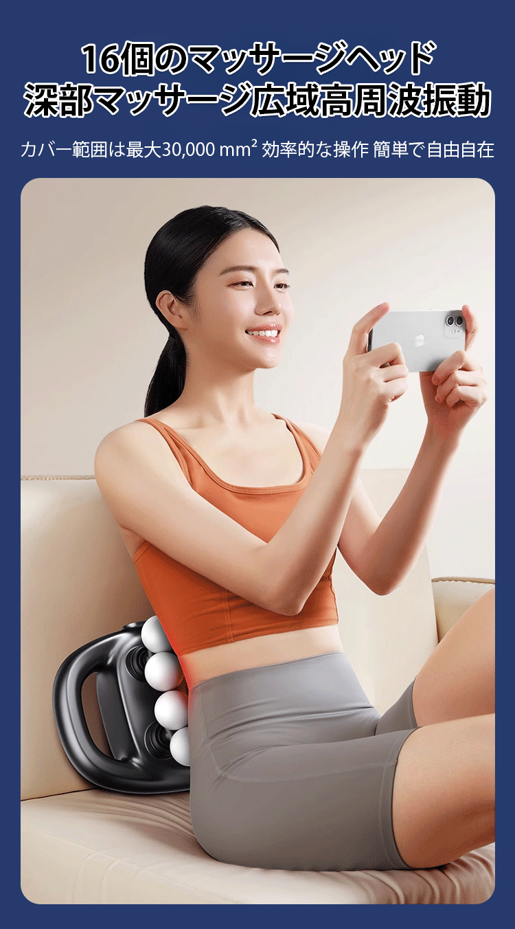 16頭筋膜ガンは強力で広範囲に全身をマッサージします。